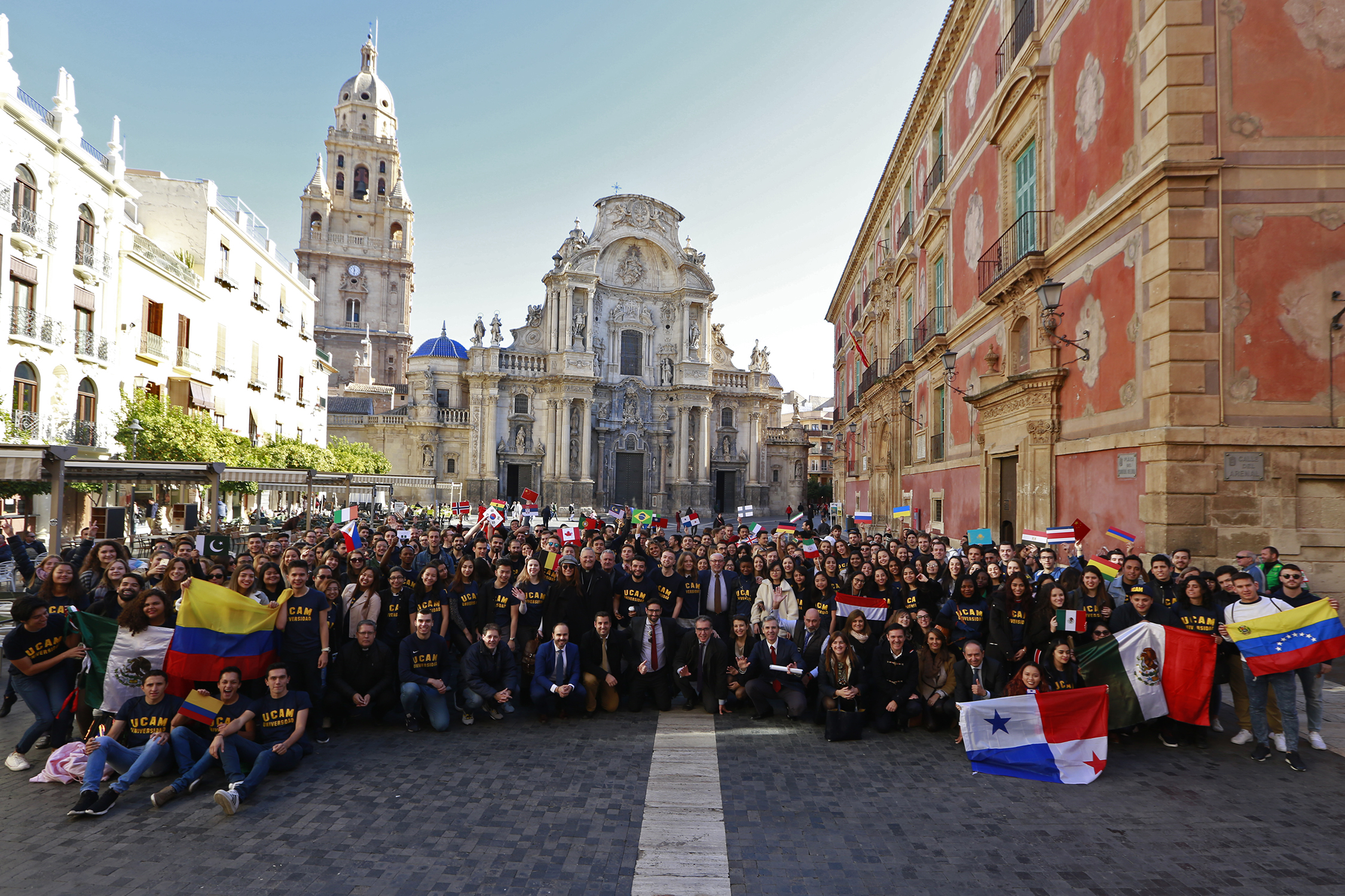La Universidad Católica de Murcia ha dado la bienvenida a un grupo de alumnos extranjeros de nuevo ingreso. De los 2.500 alumnos internacionales con lo que cuenta este curso la institución docente, 2.000 estudiarán en los campus de Murcia y Cartagena, y los otros 500, lo harán en las delegaciones internacionales de la Universidad. Además, la UCAM es la universidad española que cuenta con más títulos íntegramente en inglés con un total de seis. El acto de bienvenida, que ha tenido lugar en el entorno de la Catedral de Murcia, ha contado con la intervención de José Luis Mendoza, presidente de la UCAM, y José Manuel Lorca Planes, obispo de la Diócesis de Cartagena.