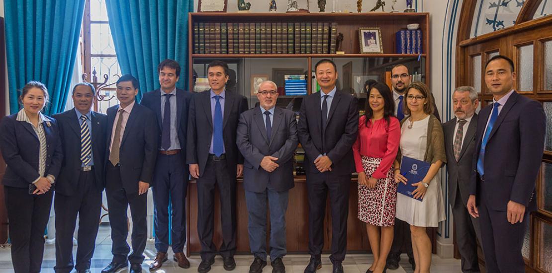 Guangzhou Sport University (Universidad del Deporte de Cantón) es una Universidad china con sesenta años de historia, más de 8.000 estudiantes y una trayectoria enfocada al mundo del deporte, tanto en sus titulaciones de grado como en sus másteres. Por sus aulas han pasado más de sesenta deportistas olímpicos y en su campus se vive y se respira deporte. Con estas señas de identidad era inevitable que cruzara su camino con la UCAM, la Universidad del Deporte en Europa. Una delegación de la institución asiática, encabezada por Liu Yongdong, presidente de la Universidad, ha estado hoy en la UCAM conociendo las instalaciones del Campus de Los Jerónimos, el Centro de Investigación en Alto Rendimiento Deportivo, el UCAM Sports Center y visitando a los clubes de fútbol y baloncesto para conocer más de cerca el proyecto global de la Universidad Católica de Murcia desde todos sus enfoques: competición, docencia e investigación. Liu Yongdong se mostraba contento y destacaba que ya existía un interés mutuo por iniciar un camino conjunto: “La UCAM es muy conocida en el ámbito del deporte y por ello teníamos un especial interés por colaborar con esta Universidad”. Hay muchos proyectos en el horizonte pero los primeros pasos ya se han dado con la firma de un convenio enfocado a colaborar en titulaciones relacionadas con el fútbol: “Queremos establecer una relación en varios aspectos del deporte. Hemos empezado a colaborar en el fútbol desde distintos puntos de vista como la nutrición, el rendimiento deportivo, la fisioterapia o la gestión”. Se inicia así un camino de colaboración entre dos universidades que tienen el deporte como una de sus señas de identidad. Guangzhou Sport University y la Universidad Católica de Murcia son dos instituciones reconocidas en España y China por su trabajo en materia deportiva y con este acuerdo se abre la puerta a más proyectos entre ambas universidades tanto en docencia como en investigación.
