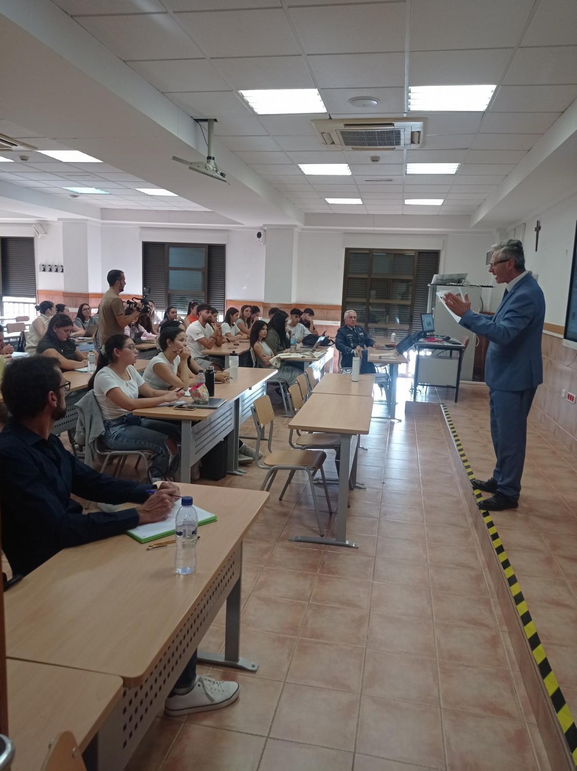 Félix López Cánovas, Jefe del Equipo de lnvestigación Tecnológica de la Unidad Orgánica de Policía Judicial de la Guardia Civil de Murcia ha sido uno de los principales ponentes del Seminario: Los Riesgos y Amenazas a la Seguridad Nacional en la Estrategia Española de Seguridad 2021, organizado por el Vicerrectorado de Relaciones Internacionales y Comunicación de la UCAM. Hoy continúan las conferencias de la mano de la Embajadora del Pacto por el Clima de la Unión Europea y del Vicedecano del Grado en Podología y de la UCAM.