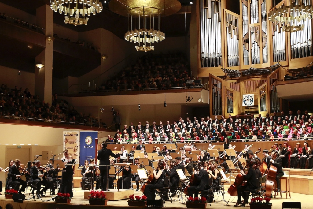 Por quinto año consecutivo, la Orquesta Sinfónica de la UCAM da la bienvenida al nuevo año en Madrid, en un evento que ya forma parte de la tradición en la capital de España y que pone en valor nuestro género lírico. Si el año pasado era el tenor mejicano Javier Camarena quien lideraba el abanico de solistas, en esta ocasión lo ha hecho la soprano española Ainoha Arteta. Junto a ella actuaron otras extraordinarias voces del panorama lírico internacional como las mezzos Cristina Faus y Nancy Fabiola Herrera; los tenores Alejandro Roy (que llegana de debutar con triunfo en el Metropolitan de Nueva York), Javier Tomé y Antonio Vazquez; el barítono David Menéndez y el bajo Ruben Amoretti. Con ellos, y bajo la dirección de Borja Quintas, los coros Canticum Novo, Taller de Zarzuela de Madrid y Kantorei, y el acompañamiento de la Orquesta Sinfónica de la UCAM.