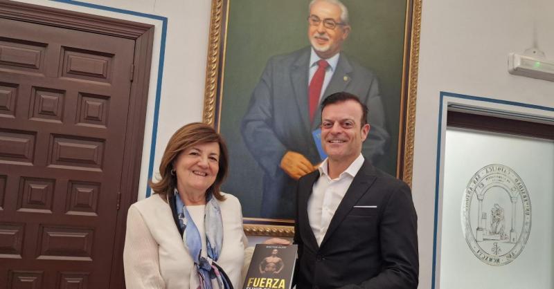 Ha entregado un ejemplar firmado a María Dolores García, presidenta de la Católica de Murcia, universidad en la que es profesor del Master de Alto Rendimiento Deportivo: Fuerza y Acondicionamiento Físico