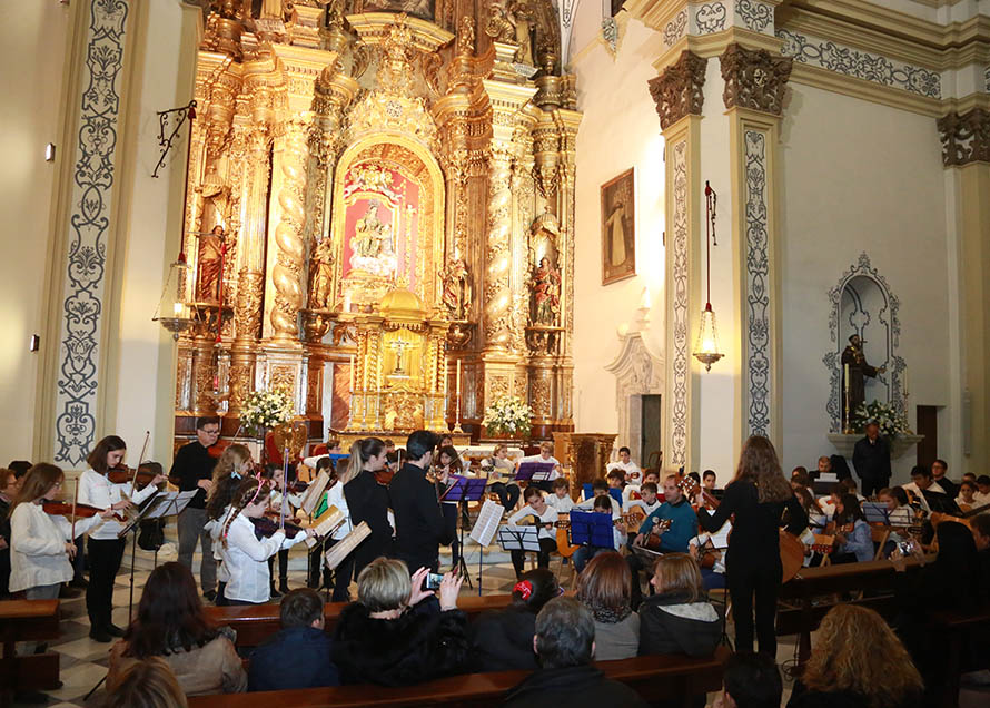 Este concierto reunió a cientos de personas que disfrutaron de la música de estos pequeños que se forman en diferentes instrumentos en la red de orquestas escolares de la UCAM. Durante el acto, los niños deleitaron al público con actuaciones musicales, villancicos populares y bailes típicos de la época navideña.