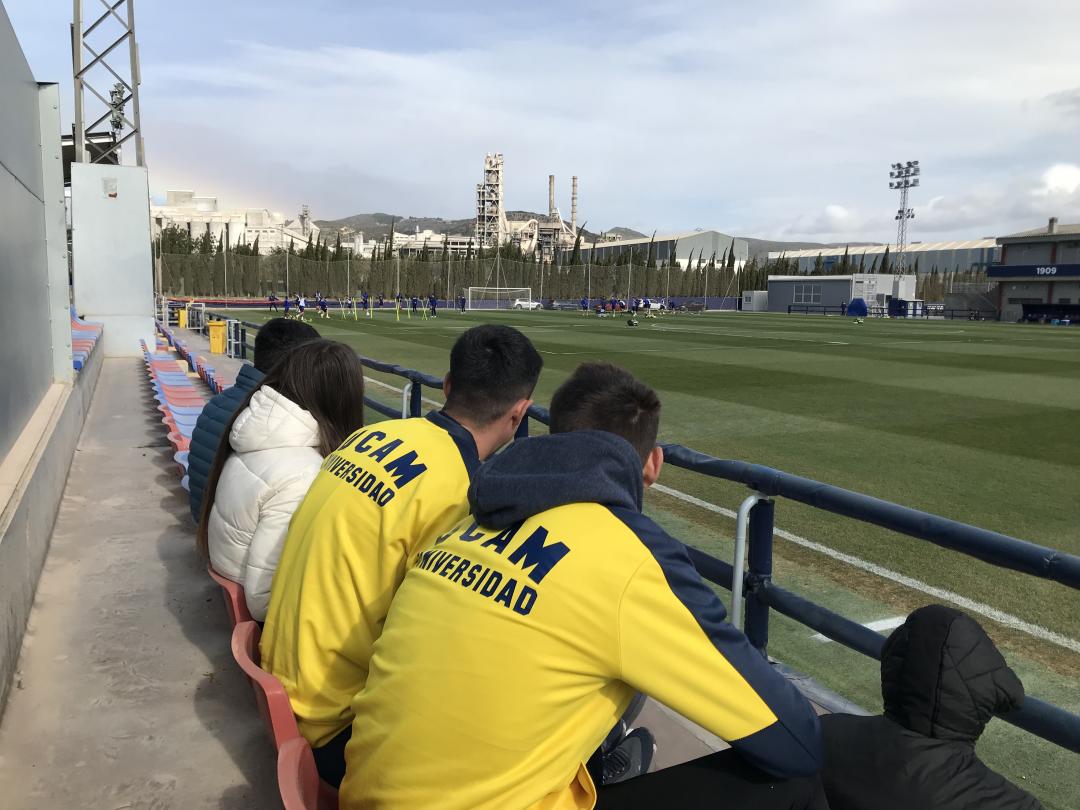 Los alumnos también pudieron ver desde la grada, el entrenamiento del primer equipo dirigido por Javi Calleja y charlar con varios de los readaptadores y preparadores físicos del club.