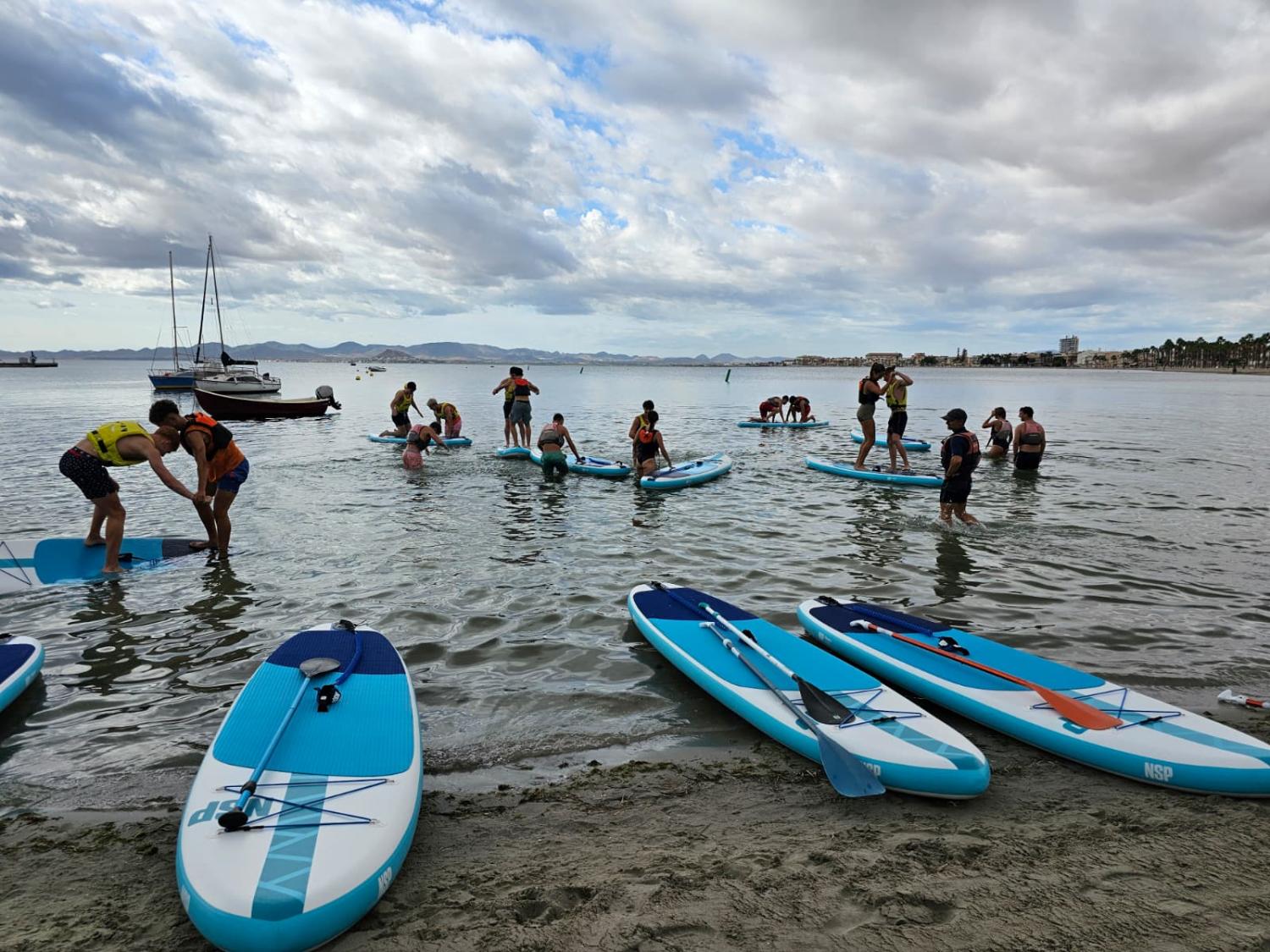 Alumnos de UCAM Cartagena se sumergen en los deportes náuticos con clases de paddle surf