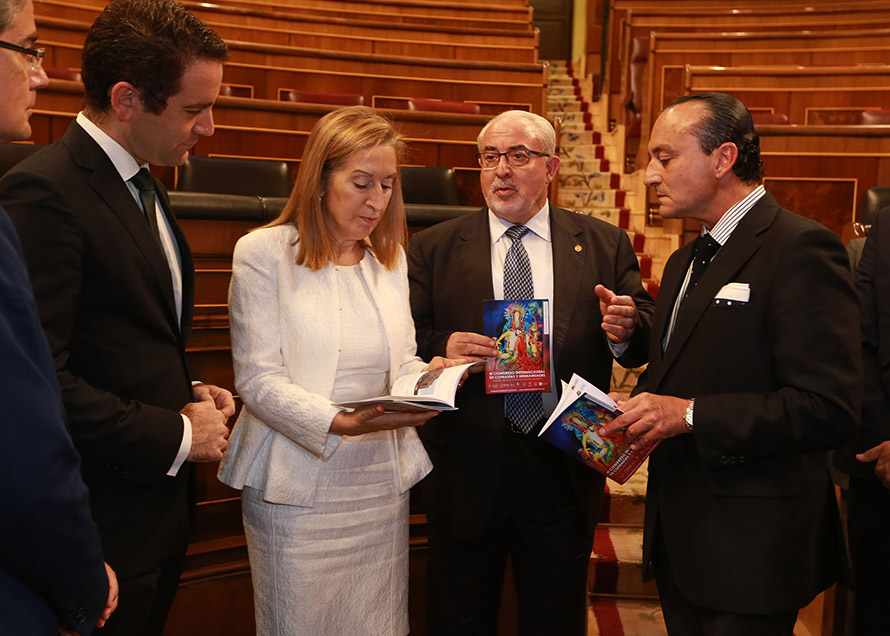 Una delegación formada por la Universidad Católica de Murcia (UCAM) y el Real y Muy Ilustre Cabildo Superior de Cofradías de Murcia encabezada por sus presidentes José Luis Mendoza y Ramón Sánchez Parra y por el concejal de Empleo, Turismo y Cultura del Ayuntamiento de Murcia, Jesús Pacheco han presentado a Ana Pastor, presidenta del Congreso de los Diputados, el III Congreso Internacional de Cofradías y Hermandades, que se celebrará del 8 al 12 de noviembre en la Región de Murcia, bajo el título “Salvados por la Cruz de Cristo”.