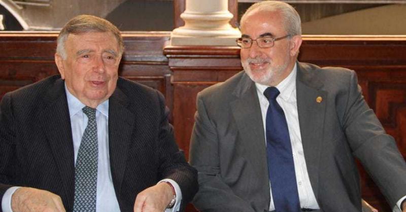 José Luis Mendoza, presidente de la Universidad Católica San Antonio de Murcia y del Foro Nueva Murcia, acompañó el pasado martes 24 de septiembre al periodista, escritor y presidente de ‘El Imparcial’, Luis María Anson, durante la visita que realizó a Murcia, y en la que intervino en el Ciclo de Conferencias del Foro Nueva Murcia. El presidente de la UCAM resaltó su prestigio como periodista y lo definió como un “gran humanista, gran pensador, profundo conocedor del sistema político español, sindical, europeo y mundial, un hombre lleno de valores humanos, defensor de los valores éticos y morales y siempre un modelo de ejemplo como periodista para todos aquellos que quieran cursar esta profesión”.