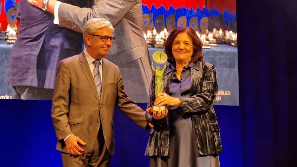 María Dolores García, presidenta de la UCAM, recogió el galardón de la Asociación de la Radio y Televisión de la Región en reconocimiento a la labor del fundador de la Universidad Católica de Murcia en favor del sector audiovisual tanto en el plano académico como profesional