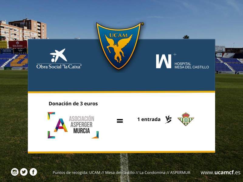 Este domingo 18 de febrero se celebra el Día Internacional del Síndrome de Asperger, cita por la que el Universidad Católica de Murcia Club de Fútbol se solidariza con ASPERMUR, la Asociación Asperger Murcia. Para ayudar a esta institución, el Club donará todo lo recaudado con las entradas del Fondo Norte del partido ante el Betis Deportivo, que tienen un precio de tan solo 3 euros para el público en general.