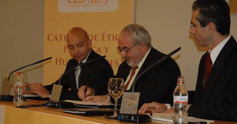 “Esta Cátedra tiene un perfil de excelencia académica”, aseguró el secretario general de la Fundación FAES, Jaime García-Legaz, durante la presentación de la nueva Cátedra ‘Ética, Política y Humanidades’, en referencia al alto número de personalidades y de universidades españolas y extranjeras que forman parte de este proyecto. Cabe destacar que el ex-presidente del Gobierno, José María Aznar, director de la Cátedra, será el encargado de impartir la conferencia inaugural del Acto Oficial de Apertura del curso académico de la UCAM el próximo 9 de noviembre, bajo el título ‘Los valores en la vida política actual’.Por su parte, el presidente de la UCAM, José Luis Mendoza, destacó el carácter internacional de este nuevo proyecto que inicia la Universidad Católica, y que “concentrará a jóvenes de diversas partes de España”, ha matizado. Del mismo modo, aseguró que los objetivos de este convenio de colaboración con FAES recogen la realización de foros de discusión, de conferencias, seminarios, talleres, estudios e investigaciones conjuntas, etc.El Vicerrector de Relaciones Internacionales y Comunicación de la Universidad Católica, Pablo Blesa, subrayó la importancia de esta Cátedra que “está arropada por una serie de organizaciones de referencia internacional como la Universidad de Harvard, la Facultad de Derecho de la Universidad de Bolonia, o el ‘Centro de Política Deliberativa’ de la Universidad de Stanford”.