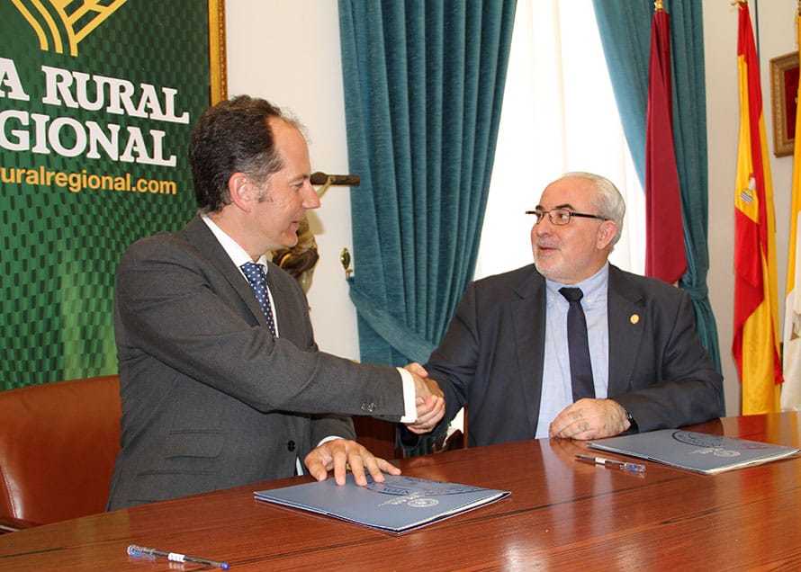 La Universidad Católica San Antonio de Murcia y Caja Rural Regional han firmado esta mañana un acuerdo de colaboración para facilitar a los estudiantes de la UCAM el pago de sus matrículas, del material didáctico y de los gastos de manutención. José Luis Mendoza, presidente de la UCAM; y Juan Andrés Jiménez, presidente de Caja Rural Regional, firmaron el acuerdo entre las dos instituciones.