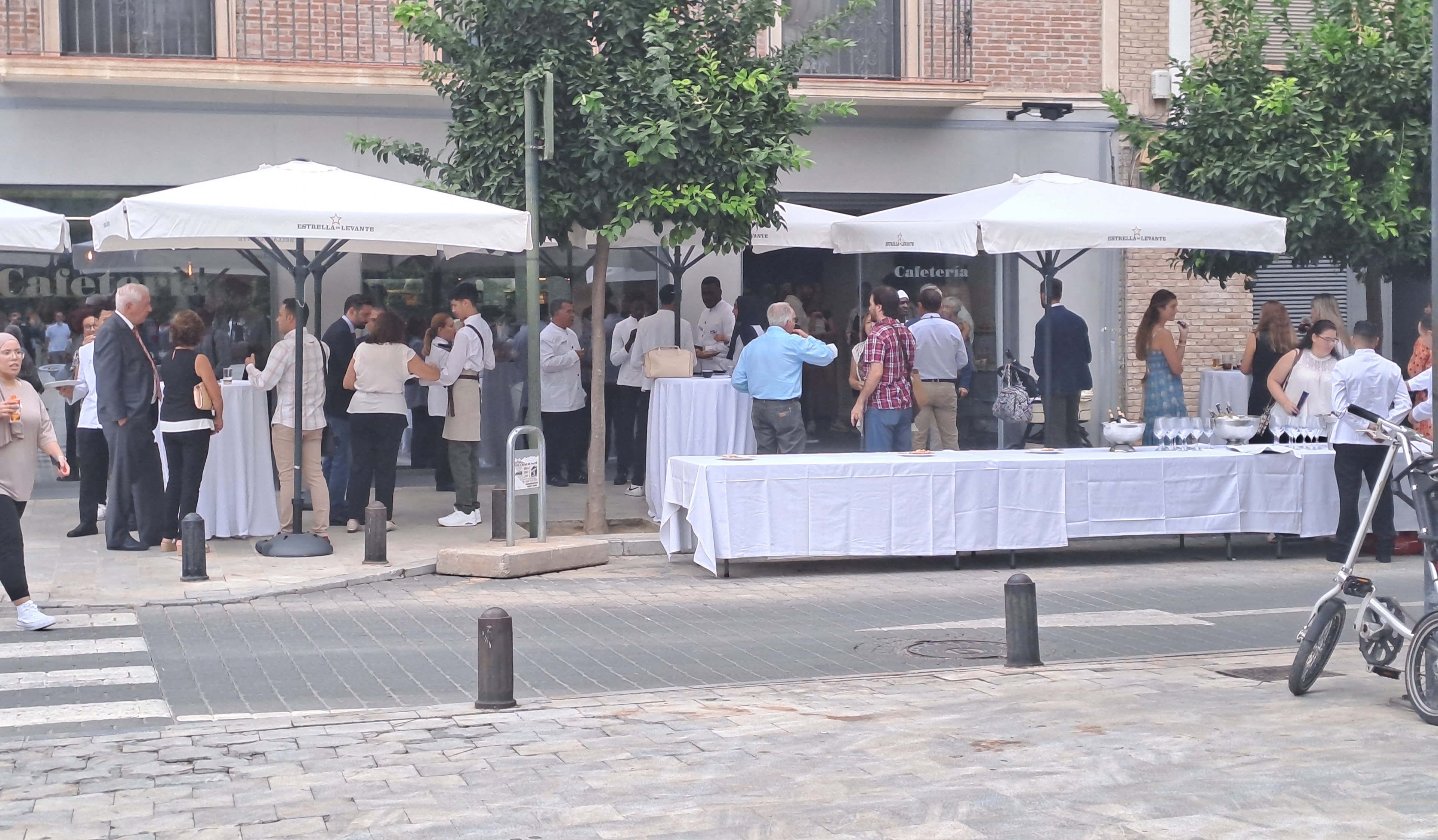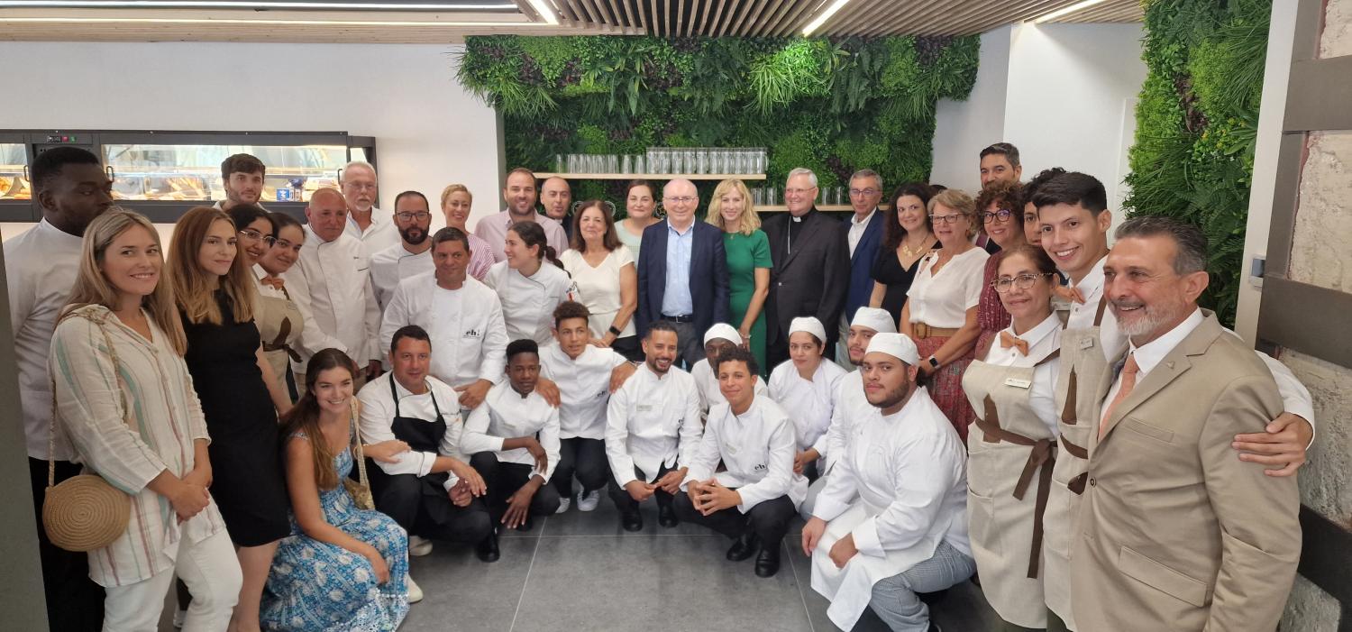 Tras la bendición de las instalaciones por parte del obispo José Manuel Lorca Planes, presidente de Cáritas en la Diócesis de Cartagena, el alumnado de la Escuela de Hostelería eh! y los trabajadores de la Empresa de Inserción de Cáritas eh! laboras han servido un aperitivo a los asistentes elaborado en el espacio.