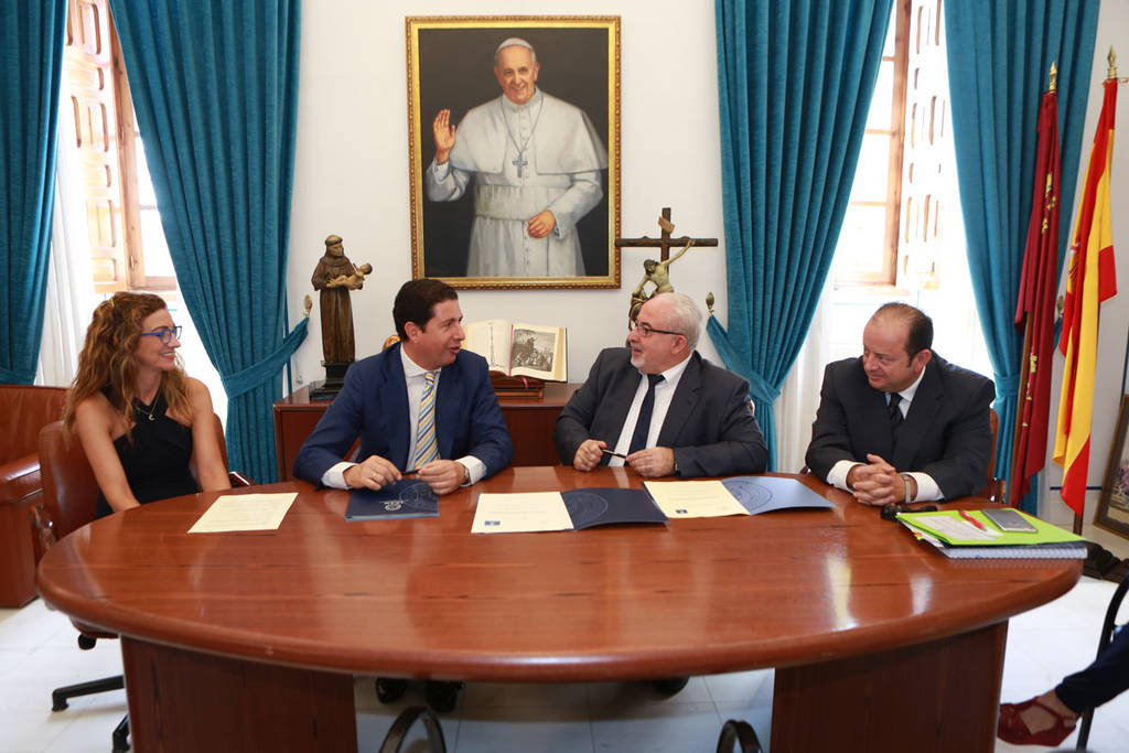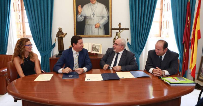El presidente de la UCAM, José Luis Mendoza, y el de la Autoridad Portuaria, Antonio Sevilla, han firmado esta mañana el protocolo de actuación de la Cátedra y un convenio en el ámbito de la innovación. El objetivo es crear valor en el entorno económico, social, ambiental e institucional, integrando la transparencia en la gestión y promoviendo estos valores entre los colaboradores del Puerto. Para ello se crearán unidades de conocimiento aplicado, y la innovación será transversal en todos los ámbitos de actuación. Un ejemplo importante será el proyecto “Impulso Santa Lucía”, plan de innovación social que se trabajará con los vecinos de la zona.