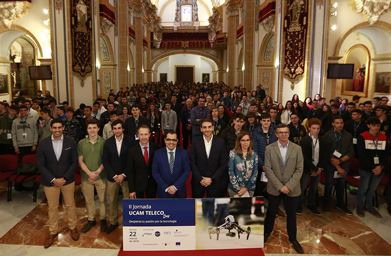 Despertar vocaciones tecnológicas. Este ha sido el objetivo de la jornada UCAM Teleco Day que ha celebrado hoy la Universidad Católica de Murcia, a través de su Grado en Ingeniería en Sistemas de Telecomunicación. En el acto han participado cerca de 500 estudiantes de bachillerato de diferentes centros de la Región - Centro Educativo Los Olivos (La Alcayna), San José (Espinardo), Maristas La Merced (Murcia), San Buenaventura Capuchinos (Murcia), San Vicente de Paúl (El Palmar) Montepinar, IES Ricardo Ortega (Fuente Álamo), Nuestra Señora del Carmen-Carmelitas (La Unión) y San Vicente de Paúl (Cartagena)- que han conocido de primera mano, a través de ponencias y talleres, la gran aplicación de las tecnologías en la sociedad actual. Además, han asistido a una exhibición del Sistema DigiCan en colaboración con el Club Agility Murcia.