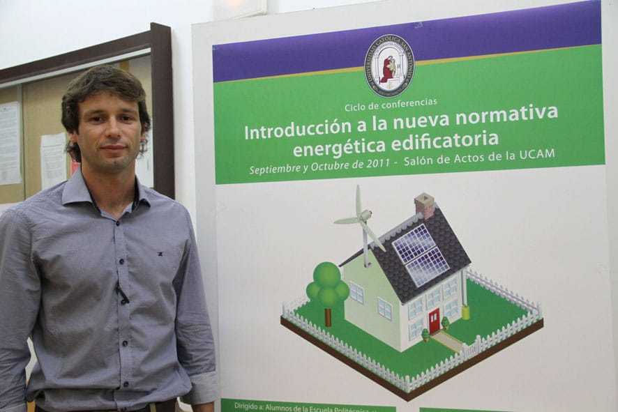 “Coches ecológicos, electrodomésticos con etiqueta ‘A’, tres cubos de basura en nuestras casas... todos hemos interiorizado el concepto de eficiencia energética y cada uno a su nivel hace por mejorar en este sentido”, aseveró el responsable del Área de Ingeniería de la empresa Bionet Servicios Técnicos, Pedro Antonio Buendía, que disertó el pasado miércoles 21 de septiembre en la UCAM, sobre la limitación de demanda energética. Cabe destacar que el acto estuvo enmarcado en el ciclo de conferencias ‘Introducción a la nueva normativa energética edificatoria’, que ha organizado el Grado en Ingeniería en Sistemas de Telecomunicación de la UCAM, junto a la Agencia de Gestión de la Energía de la Región de Murcia (ARGEM).