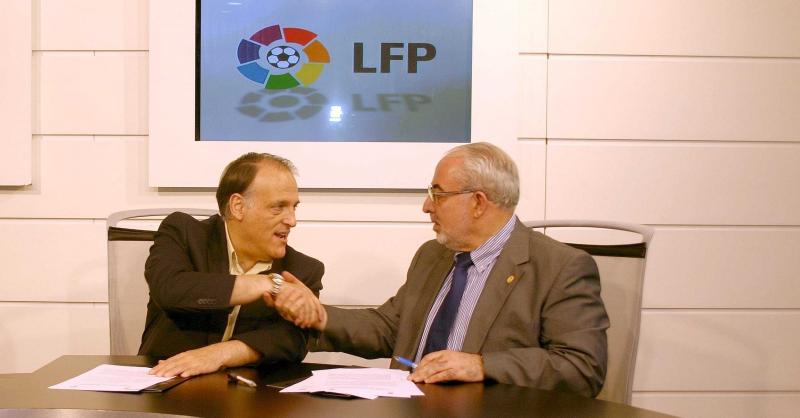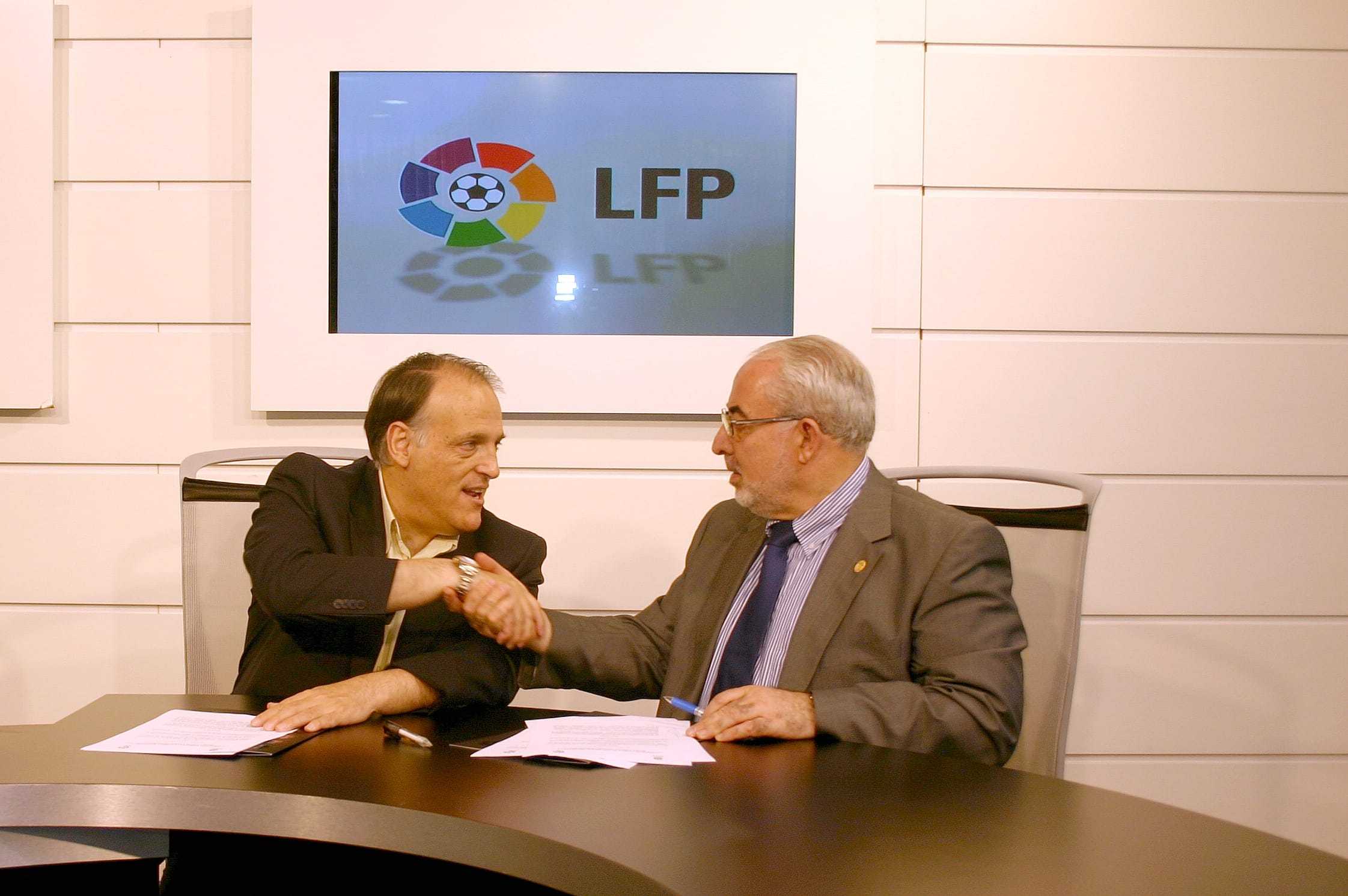 La Universidad Católica San Antonio de Murcia ha firmado un convenio con la Liga de Fútbol Profesional con el objeto de colaborar en el desarrollo y en el perfeccionamiento de las actividades, materias y proyectos de competencia e interés común dentro del ámbito del deporte y del olimpismo. El acuerdo ha sido rubricado por el presidente de la UCAM, José Luis Mendoza, y por el presidente de la LFP, Javier Tebas. Además, al acto de la firma han acudido tanto Pablo Rosique, director del Servicio de Actividades Deportivas de la UCAM como Antonio Sánchez, decano de la Facultad de Ciencias de la Actividad Física y del Deporte de la UCAM.