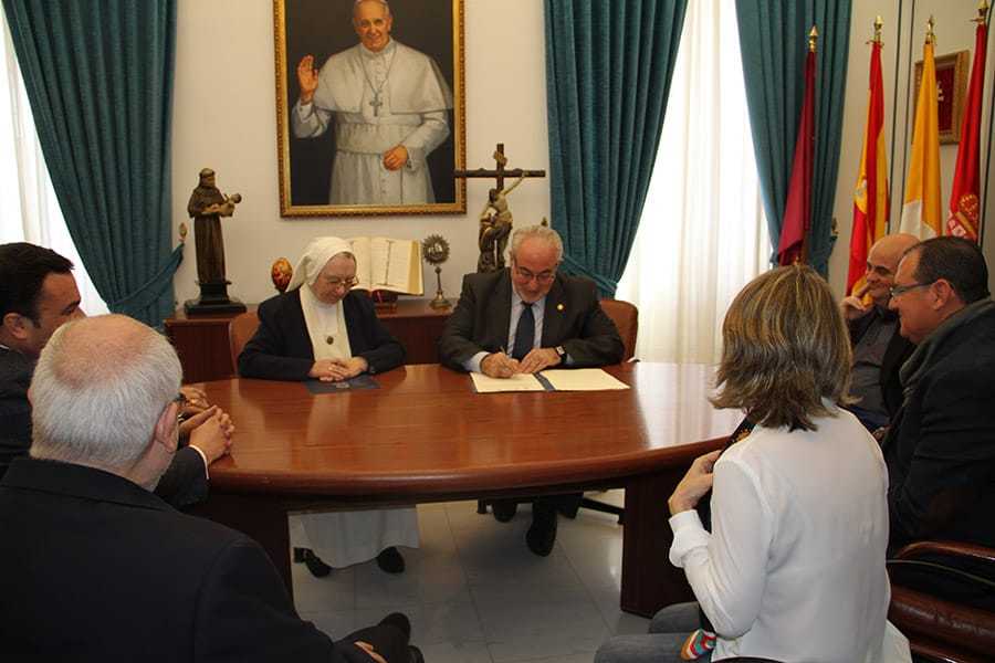 Investigar en el área de la atención social y sanitaria de personas mayores que se encuentran dependientes en los entornos asistenciales residenciales y centros de día, junto con la mejora de la formación de profesionales relacionados con el área, son dos de los puntos fundamentales de esta nueva Cátedra creada por la Universidad Católica de Murcia y la Asociación Murciana de Residencias y Servicios de Atención a los Mayores- Sector Solidario (Lares-Murcia). Además, la firma de ésta permitirá también la realización de prácticas docentes e investigadoras para alumnos, y la celebración de seminarios, coloquios o talleres sobre tema relativos a los contenidos de la misma, entre otros puntos. El acuerdo ha sido rubricado por José Luis Mendoza, presidente de la UCAM, y por Sor Belén Pachón, presidenta de la Asociación murciana. La dirección de la misma será para Carmelo Gómez Martínez, miembro de Lares-Murcia y profesor asociado de la UCAM, quien ha destacado la importancia de la Cátedra en el ámbito de la investigación y la formación. “Las personas que trabajamos en este entorno necesitamos estar muy formados para atender la necesidad, cada vez más sanitaria, dentro del marco social en el que viven nuestros mayores”, ha asegurado.
