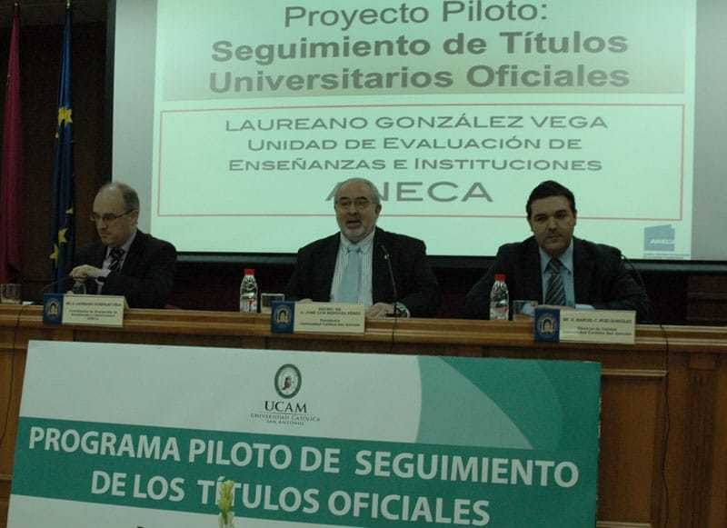 El coordinador de Evaluación de Enseñanzas e Instituciones de la Agencia Nacional de Evaluación de la Calidad y Acreditación (ANECA), Laureano González, ha ofrecido una charla en la UCAM. El objeto ha sido abordar el inicio del proyecto piloto de seguimiento de las titulaciones universitarias oficiales de grado y máster que se imparten en la UCAM, de acuerdo con lo que indican los RD 1393/2007 y 861/2010.