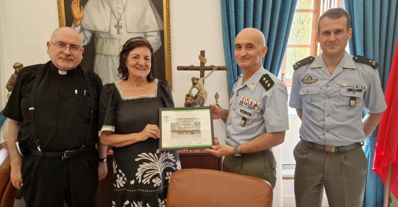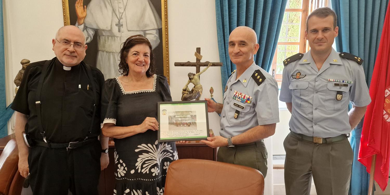 El Regimiento de Infantería ‘Zaragoza' nº5 de Paracaidistas realiza cada Cuaresma la procesión del Cristo de los Estudiantes de la UCAM, desfile que ha sido tradicionalizado ahora por el Ejército de Tierra, quedando por tanto como fijo en el calendario de colaboraciones procesionales que protagoniza la BRIPAC. Así se lo ha comunicado a María Dolores García, presidenta de la Universidad Católica, el coronel de este Regimiento con base en Javalí Nuevo, Guillermo García Ferrrer, acompañado en el encuentro mantenido en el Campus de Los Jerónimos, por el capitán Juan Soto, y Antonio Alcaraz, vicerrector de Extensión Universitaria. En la misma reunión, el coronel García Ferrer ha obsequiado a la presidenta con una fotografía en la que se recoge el momento de la entrega del material donado por la UCAM en la misión que están realizando los paracaidistas del regimiento en El Líbano.