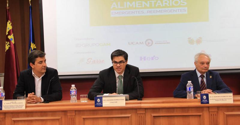 En el acto de apertura han estado presentes José Mª Cayuela, vicedecano de los grados en Ciencia y Tecnología de los Alimentos, Nutrición Humana y Dietética y Gastronomía de la UCAM; Francisco Alonso, miembro de la Academia de Ciencias Veterinarias de la Región de Murcia y Alejandro Nombela, gerente del Grupo GAM.