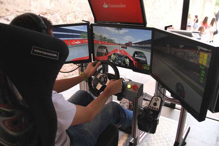 El Santander MotorHome, que está situado junto al Monasterio de los Jerónimos, contiene en su interior cinco simuladores de F1. Entre los participantes que obtengan mejor marca, se elegirá a un ganador que irá a competir, junto a un amigo, a Madrid. Además, hay que destacar que el mejor clasificado de entre todas las universidades visitará la Ferrari Academy.