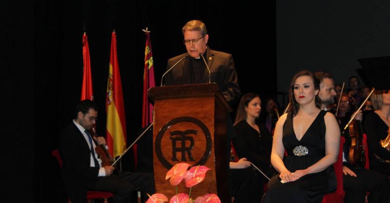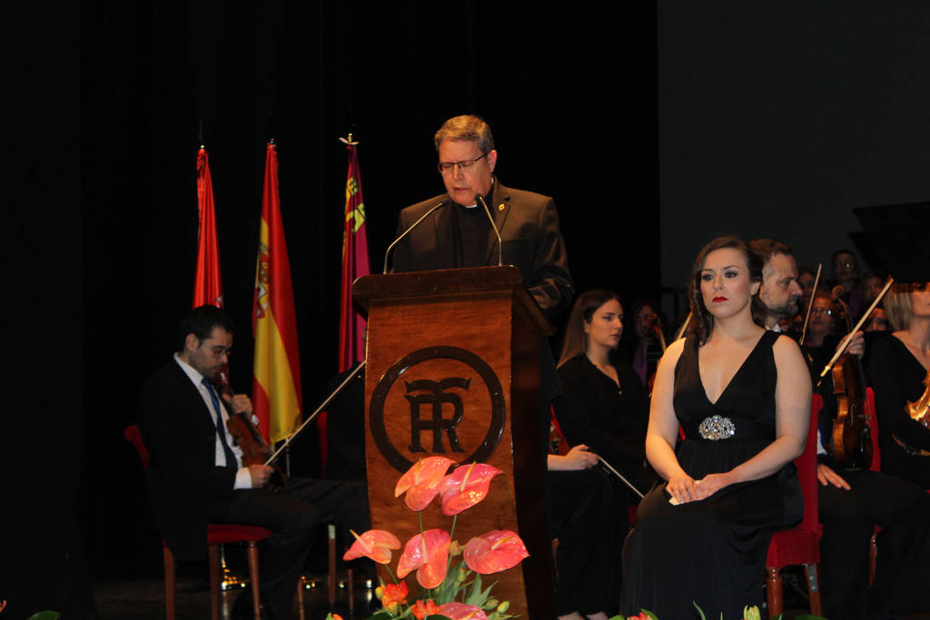 La interpretación de la escena final del Drama Sacro de Jesús de Nazaret, compuesto por Julián Santos y Roque Baños, emocionó a los asistentes. “Murcia es una ciudad que vibra con la preparación de la Semana Santa y disfruta con ella”, aseguró el capellán mayor de la Universidad.