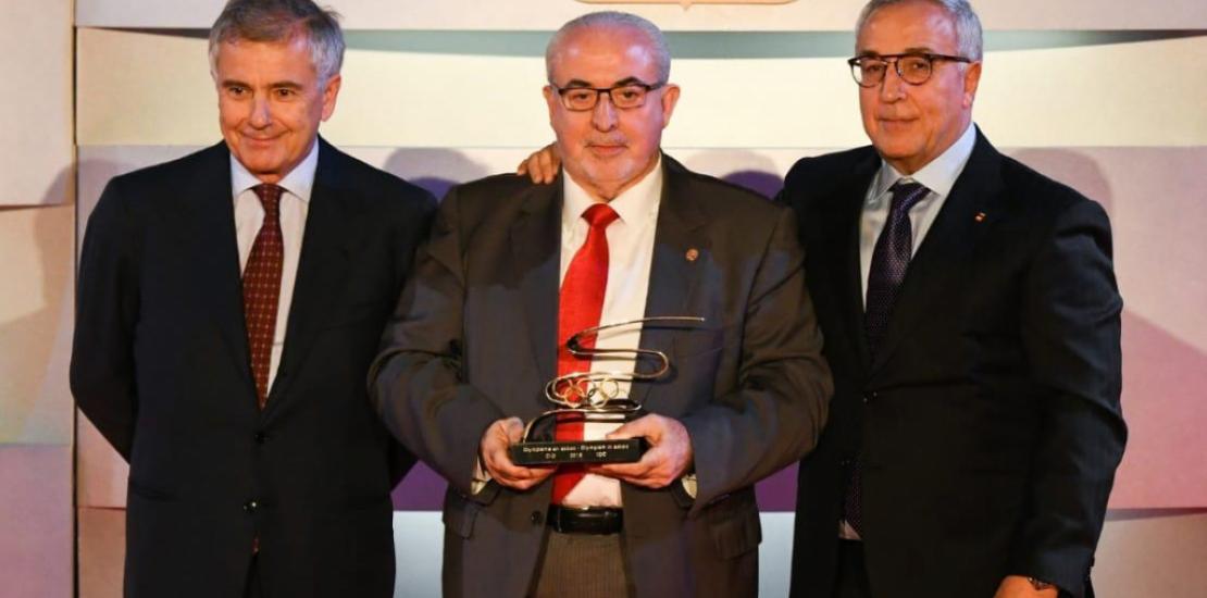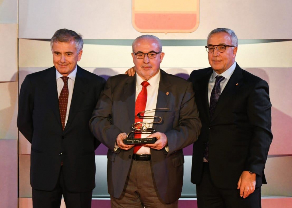 José Luis Mendoza, presidente de la Universidad Católica de Murcia, recogió el galardón de manos de Alejandro Blanco, presidente del COE, y Juan Antonio Samaranch, vicepresidente del COI