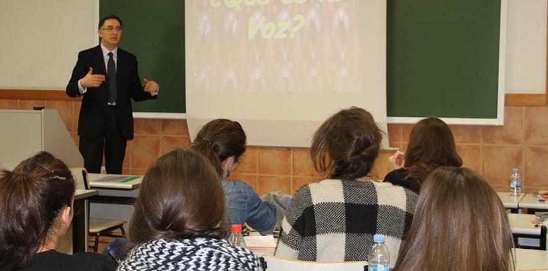 El decano de la Facultad de Medicina de la Universidad de Navarra imparte una clase en el Máster en Trastornos de la Voz