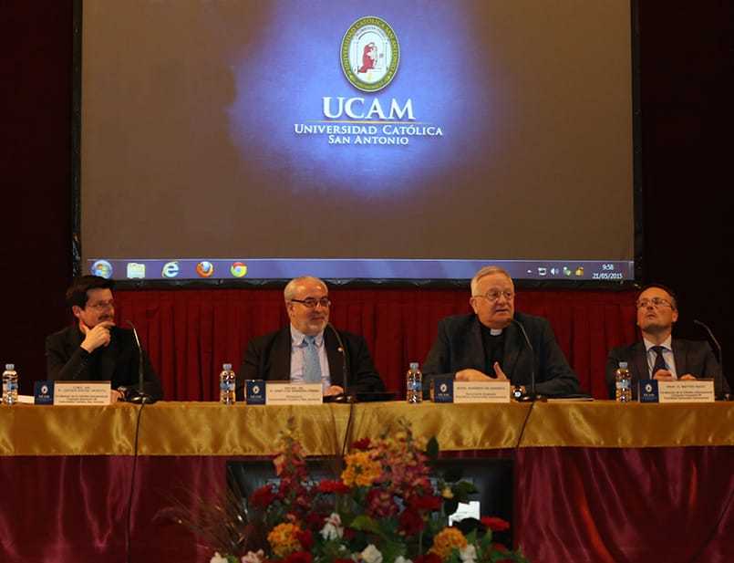 El presidente de la UCAM, José Luis Mendoza ha inaugurado el acto acompañado por el secretario general de la Pontificia Universidad Lateranense, monseñor Roberto De Odorico. Mendoza ha destacado la importancia de la investigación, también en el ámbito del Derecho.