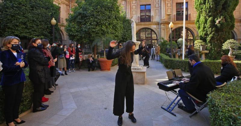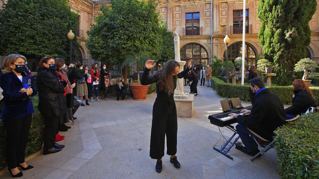 Alumnas del Grado en Danza han ofrecido una emotiva coreografía, que ha servido como homenaje a todas las mujeres, reclamando la igualdad y enviando un mensaje de esperanza y compromiso para erradicar esta lacra.