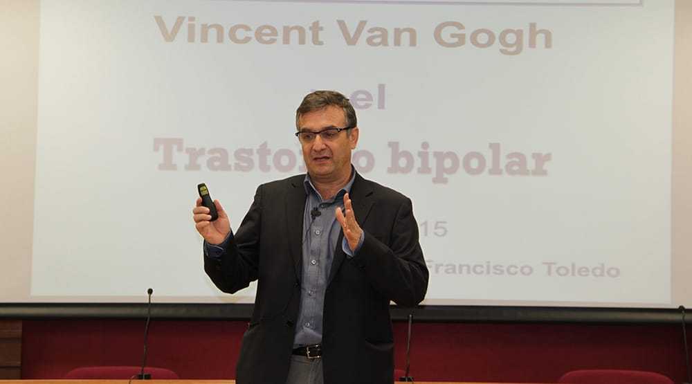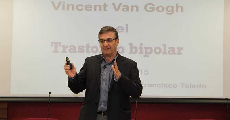 Los conocimientos existentes sobre Vincent Van Gogh y los documentos que han llegado hasta nuestros días hacen posible trazar un diagnóstico preciso sobre el trastorno bipolar que afectaba al pinto holandés. Así lo explica Francisco Toledo, psiquiatra Titular del Hospital Universitario Virgen de la Arrixaca y profesor de la Universidad de Murcia, en una conferencia ofrecida en el salón de actos de la UCAM: “Nosotros hacemos las historias médicas a través de la vida de los pacientes. Van Gogh nos da una doble vertiente ya que contamos con una serie de cartas que escribía a su hermano al tiempo que dibujaba los lienzos que marcaron una época, la del postimpresionismo. Gracias a ellos podemos establecer un diagnóstico de trastorno bipolar. Pero sí quiero dejar claro que este diagnóstico no tiene nada que ver con la genialidad de la obra que hizo. Pudieron estar mezclados durante un momento dado y es lo que intento poner de relieve”.