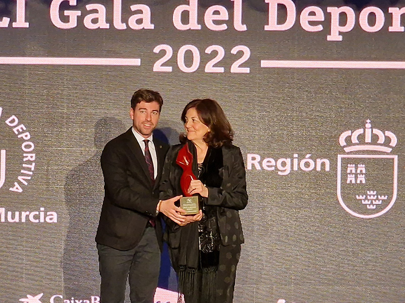 Uno de los instantes más emotivos llegó con el premio especial ‘Mecenazgo Deportivo’ al fundador de la UCAM, José Luis Mendoza, fallecido el pasado mes de enero. Su esposa y presidenta de la Universidad, María Dolores García, recogía el galardón de manos de Fran Sánchez, director general de Deportes, y lo alzaba al cielo recordando la figura del que ya es reconocido como uno de los mayores benefactores e impulsores del deporte español.