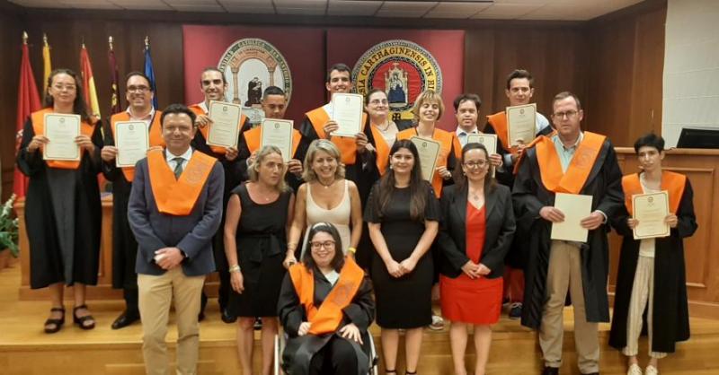La UCAM ha vuelto a celebrar una de sus graduaciones más especiales, la de sus alumnos del programa UCAMPACITAS, por el que ya han pasado ocho promociones. Todos ellos, acompañados por sus familiares y profesores, recibieron el Título Propio Universitario de Técnico de Empresas y Actividades Sociolaborales de la Universidad Católica de Murcia en un emotivo acto en el que volvieron a demostrar su afán de superación. La ceremonia estuvo presidida por Estrella Núñez, vicerrectora de Investigación de la UCAM, acompañada por Marta Rodríguez, directora del Programa; Isabel Mengual y Cecilia Mateo, coordinadoras del mismo, y Víctor Martínez López, presidente de la Asociación para personas con Síndrome de Down (ASSIDO), quien ejerció de padrino.