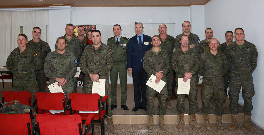 La Universidad Católica de Murcia ha entregado los diplomas a los miembros de la BRIPAC Brigada Paracaidista del Acuartelamiento ‘Santa Bárbara’ de Javalí Viejo, que han realizado un curso sobre liderazgo para las fuerzas armadas, impartido por la institución académica. En el acto han intervenido Pablo Blesa, vicerrector de Relaciones Internacionales y Comunicación, quien ha dado el curso, y el coronel Luís Sánchez Tembleque Letamendia, Jefe del Regimiento ´Zaragoza´ 5 de la Brigada Paracaidista. También han estado presentes el Teniente Coronel Ignacio Gámez, Segundo Jefe, y el cuerpo directivo de la BRIPAC.