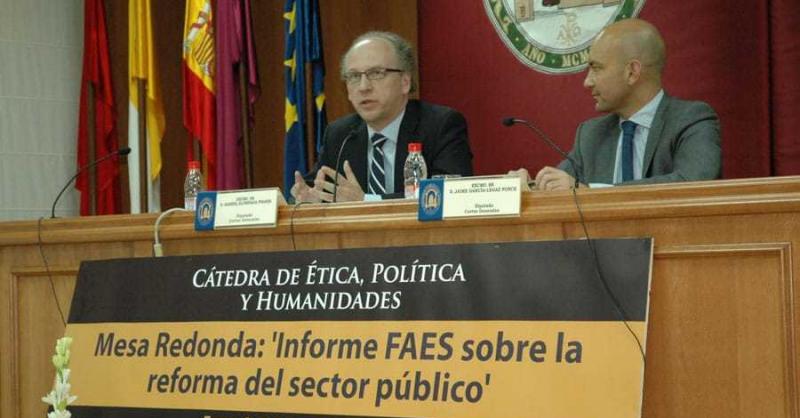 “España es el país más descentralizado de Europa“, afirmó recientemente en la Universidad Católica San Antonio de Murcia, el ex secretario de Estado de Organización Territorial y Diputado del Partido Popular por Madrid, Gabriel Elorriaga. El político presentó junto al Secretario General de FAES, y Diputado por Murcia, Jaime García Legaz, el `Informe FAES sobre la Reforma del Sector Público”, en el transcurso de una mesa redonda enmarcada en el programa divulgativo de la Cátedra de Ética Política y Humanidades, UCAM-FAES, para el curso 2010-2011.
