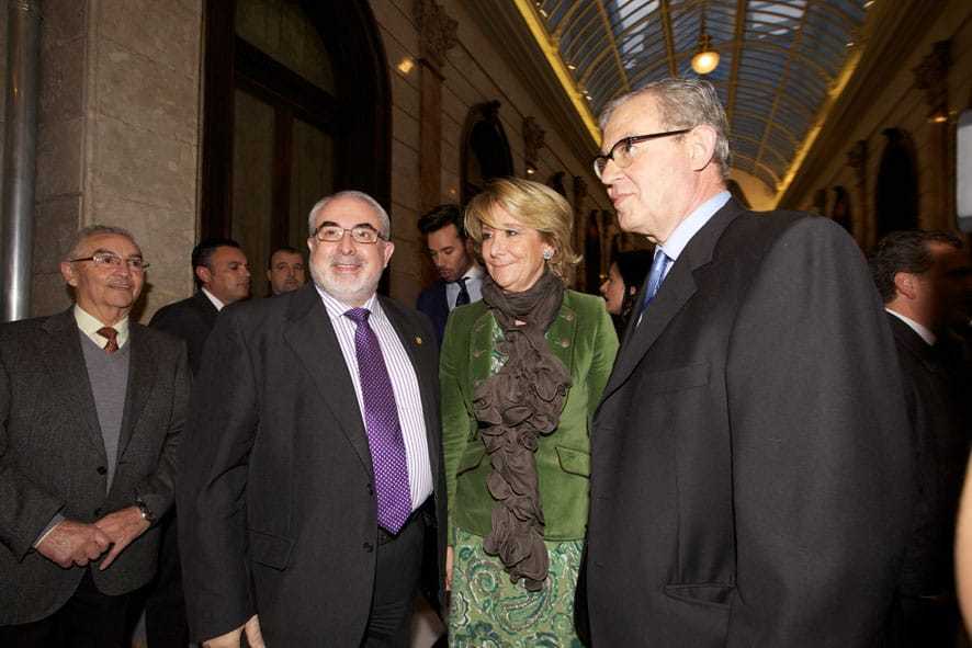 El Real Casino de Murcia ha sido escenario esta tarde del primer encuentro del año 2013, del Foro Nueva Murcia, protagonizado en esta ocasión por la ex presidenta de la Comunidad de Madrid, y actual presidenta de los Populares madrileños, Esperanza Aguirre, quien ha pronunciado en el marco del Foro, su primera, conferencia tras abandonar la presidencia de la Comunidad de Madrid, centrada en el análisis de la actualidad política española. Cabe destacar que el evento ha congregado a más de 200 representantes de los sectores social, económico y político de la Región de Murcia. El presidente de la Universidad Católica San Antonio de Murcia (UCAM), y presidente del Foro Nueva Murcia, José Luis Mendoza, ha presentado a la ponente, y ha manifestado su satisfacción por contar con su presencia en este encuentro del Foro Nueva Murcia. A continuación José Luis Mendoza ha destacado la gran trayectoria política de Esperanza Aguirre y le ha deseado toda clase de éxitos en su nueva andadura profesional. Además, ha agradecido a la ex presidenta de la Comunidad de Madrid el apoyo total y fundamental prestado por ella a la UCAM desde los años en los que formó parte del gobierno de José María Aznar, como ministra de Educación. “El apoyo de Esperanza Aguirre resultó decisivo para el nacimiento y posterior desarrollo de la Universidad Católica de Murcia”.