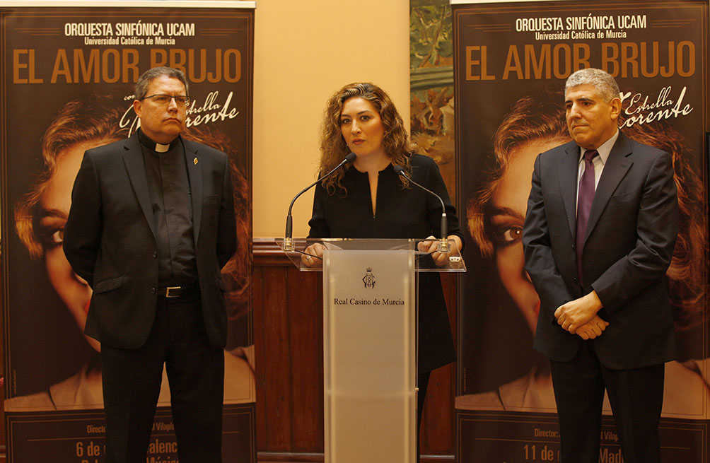 En la presentación han intervenido Eugenio Santos, gerente de la Orquesta; Luis Emilio Pascual, capellán de la Universidad, y la propia Estrella Morente, quien ha definido este trabajo como “una hermosa experiencia que la UCAM me da la oportunidad de vivir, junto a unos músicos jóvenes pero con una calidad sublime, como tiene esta Región”.