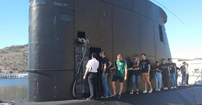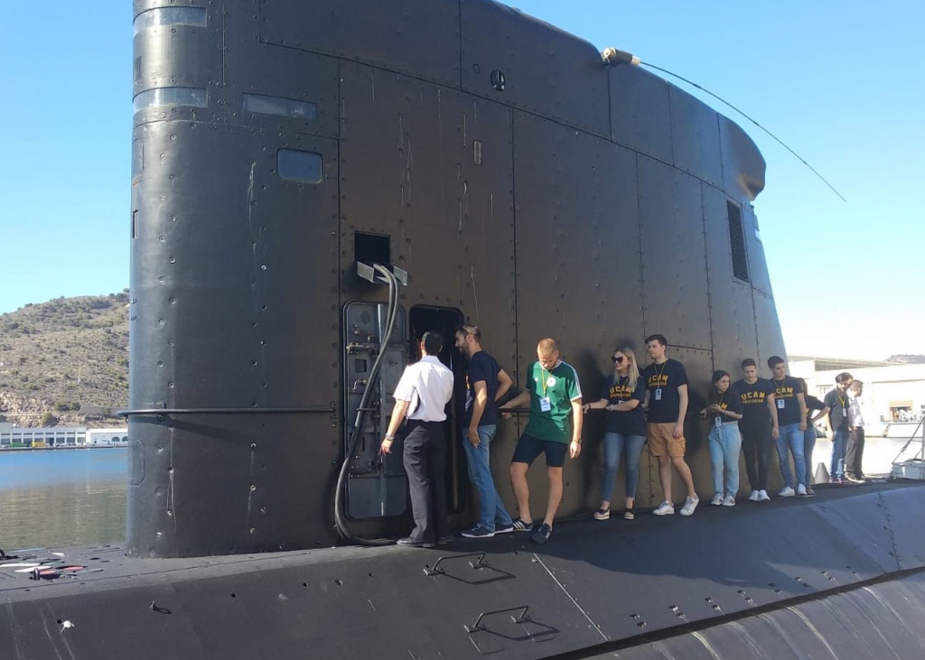 Estudiantes de los Grados de Periodismo, Comunicación Audiovisual y Publicidad y Relaciones Públicas de la Universidad Católica San Antonio han participado ayer y hoy en un simulacro de pérdida, búsqueda y localización del submarino Siroco organizado por la Armada Española en la Base de Submarinos del Arsenal de Cartagena.