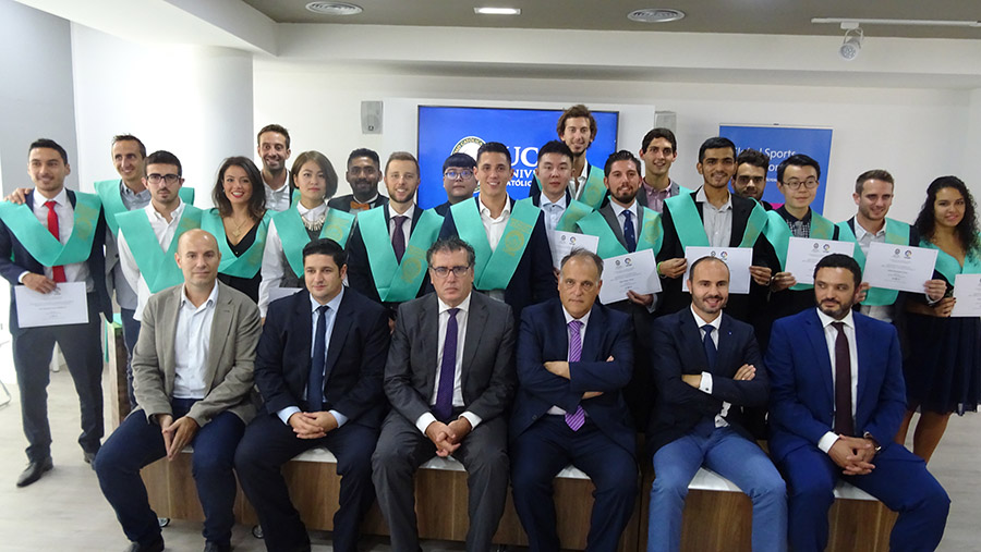 Javier Tebas, presidente de la LaLiga, ejerció de padrino de los nuevos egresados