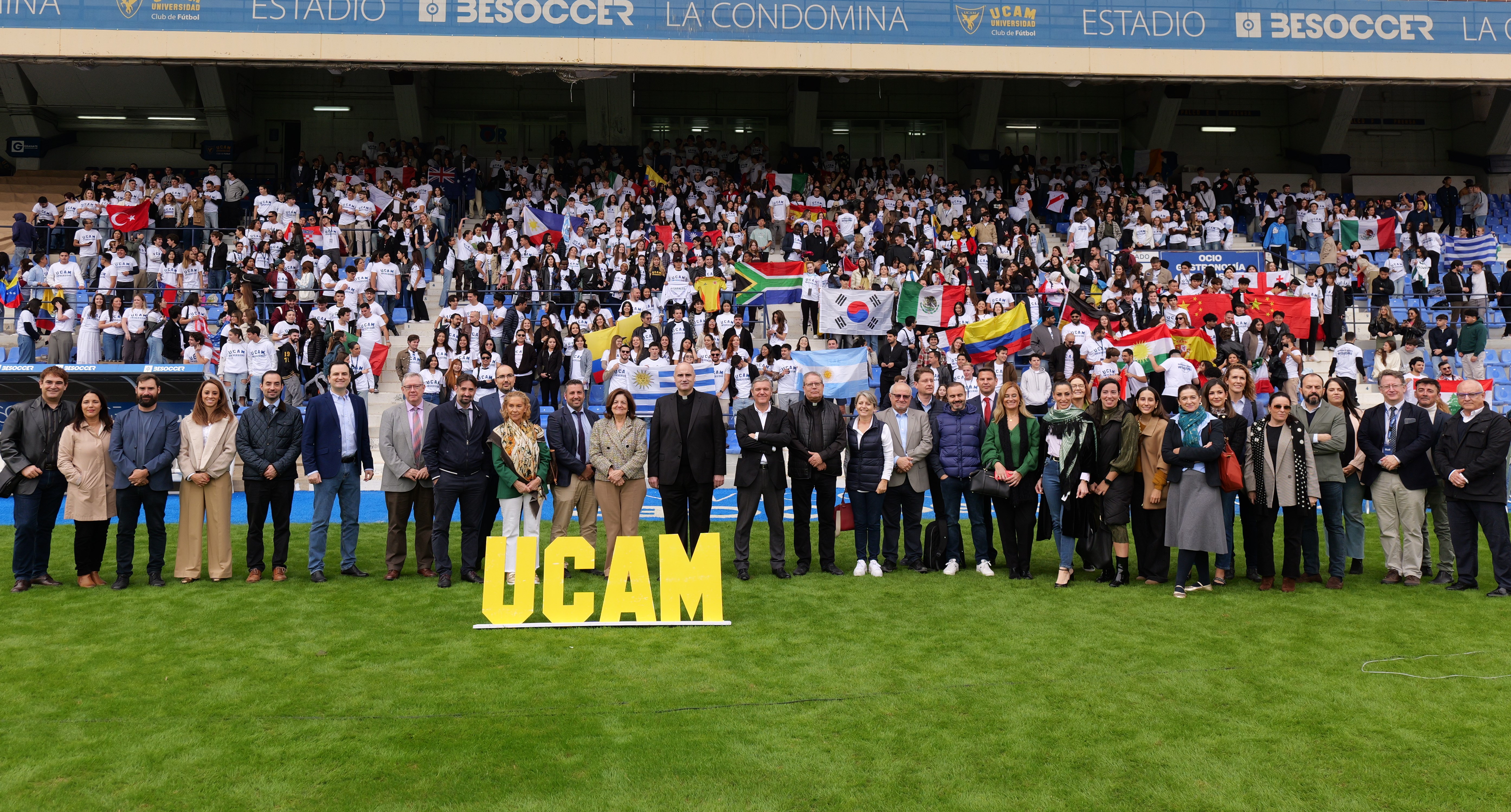 Estudiantes procedentes de China, Brasil, Perú, Italia, Francia, Egipto, Portugal, EE.UU, Argentina, México, República Dominicana, Marruecos, Francia, Alemania, y hasta un total de 120 países ondeaban orgullosos sus banderas en el acto de Bienvenida Internacional de la UCAM, celebrado esta semana en el Estadio BeSoccer La Condomina. María Dolores García, presidenta de la Universidad dio la bienvenida a los más de 1.100 nuevos estudiantes internacionales que se incorporan a la Católica este curso, una cifra que marca un hito histórico para la institución. Estos alumnos realizarán de manera presencial programas de grado, máster y de doctorado, consolidando la presencia internacional en los diversos títulos que ofrece la UCAM. Esta alta presencia de alumnos internacionales refuerza su compromiso con la excelencia educativa y su enfoque global.