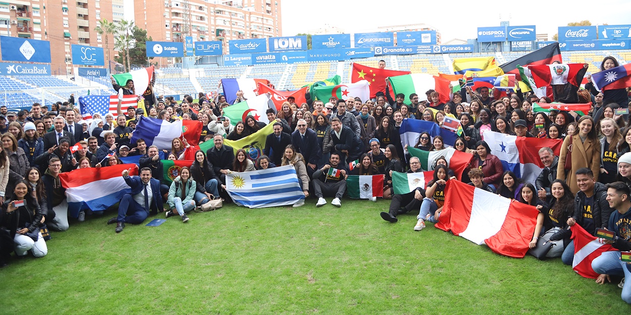 Banderas de Emiratos Árabes, Líbano, Pakistán, Perú, Filipinas, Israel, EEUU, Bélgica, Italia, Polonia, México, Francia, Brasil, Colombia, Taiwán, Egipto, etc. y rostros llenos de emoción ha sido la imagen, y las más de 65 lenguas, la banda sonora que mejor describe la Bienvenida Internacional de la UCAM, celebrado esta mañana en el Estadio BeSoccer La Condomina; En el acto, que ha estado marcado por un ambiente multicultural, festivo y de concordia, han participado los cerca de mil extranjeros de nuevo ingreso que estudian este curso en sus campus de Murcia y Cartagena, en programas oficiales de grado o postgrado, título de formación permanente o a través del Instituto Superior de Formación Profesional San Antonio.