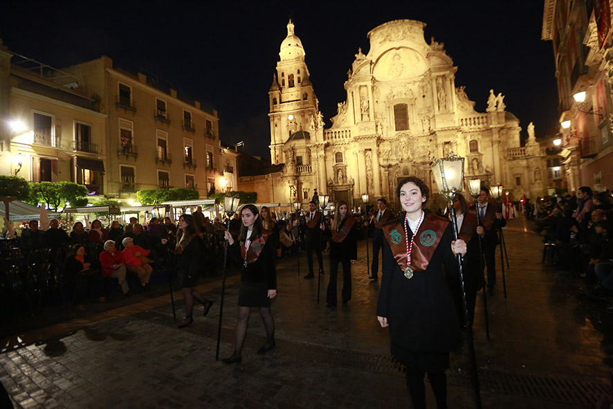 Como cada Martes Santo, desde hace seis años, alumnos de las distintas facultades presentes en la Universidad acompañaron a la Pontificia, Real, Hospitalaria y Primitiva Asociación del Santísimo Cristo, en procesión, por las calles de la capital murciana.