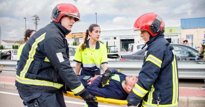 La Universidad Católica ha realizado hoy en la Escuela de Bomberos del Ayuntamiento de Murcia un simulacro de accidente de tráfico de gran magnitud donde se han visto implicados varios turismos, un autobús y vehículos eléctricos, lo que ha añadido un plus de complejidad debido al riesgo de combustión. Numerosos heridos, interpretados por alumnos de los grados en Enfermería y Psicología, han sido atendidos por los equipos de emergencias y los estudiantes de los másteres en Enfermería de Urgencias, Emergencias y Cuidados Especiales y en Psicología General Sanitaria.