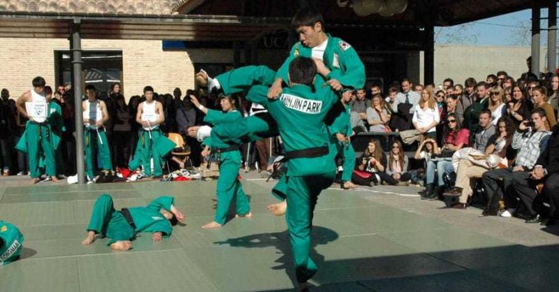 La Universidad Católica San Antonio de Murcia, a través de su gimnasio UCAM Sports Center, desarrolló el pasado miércoles 9 de noviembre en la plaza de Las Pérgolas del campus universitario, una exhibición de artes marciales a cargo de expertos en esta disciplina deportiva, desplazados desde Corea para la ocasión. La actividad, a la que asistió el presidente de la Universidad, José Luis Mendoza, contó también con la presencia del director del Servicio de Actividades Deportivas (SAD), Pablo Rosique; maestro Lee Kioung Sun, 7º Dan de Hapkido por la World Kido, y monitor de esta disciplina en el UCAM Sports Center, así como del presidente de la World Yongmoodo Association (WYF), Kim Byung Chun.