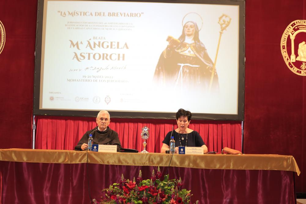 Un amplio colectivo de la comunidad universitaria de la UCAM y hermanas capuchinas de diferentes puntos de España, han asistido hoy a la segunda jornada de los actos conmemorativos del 40 aniversario de la beatificación, por san Juan Pablo II, de Sor Mª Ángela Astorch, que se celebra hoy viernes en el Campus de Los Jerónimos. José Luis Mendoza, presidente de la UCAM, ha resaltado durante los actos que “es importante que los murcianos valoremos la gran figura de la fundadora del convento de las Capuchinas, en esta preciosa jornada en homenaje a esta gran santa, maestra de vocaciones, llena de espiritualidad”.