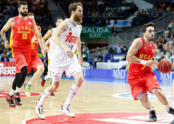 El UCAM Murcia vivió un duro despertar de su sueño de acceder a las semifinales de la Liga Endesa. Tras forzar el tercer partido el domingo en el Palacio de los Deportes, el Real Madrid arrancó el choque con un parcial de 14-0 que sería una dura losa a levantar para los universitarios. El buen hacer de Facundo Campazzo, que terminaría con 22 puntos y 24 de valoración, no sería suficiente para un equipo murciano que acabaría cayendo por 93 a 72.