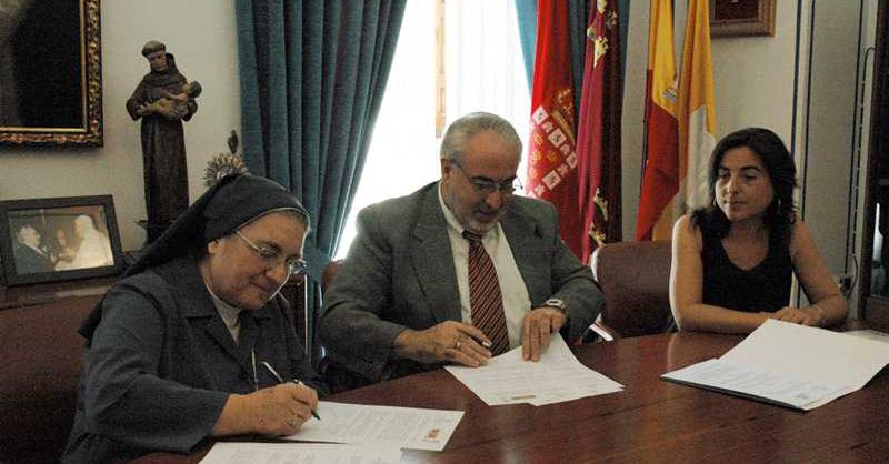 La Universidad Católica firmó recientemente dos convenios de colaboración, uno con la Residencia de Mayores ‘Hogar de Nazaret’, y otro con la Asociación Nacional Proyecto Abraham. Con la firma de estos acuerdos se sella un importante acuerdo de colaboración orientado hacia la realización, por parte de alumnos de la Universidad, de prácticas de voluntariado en ambos centros. Los convenios fueron suscritos por el Presidente de la Universidad Católica, y por la Secretaria de la Asociación Proyecto Abraham, Nuria García Clavijos, y la Vicaria de la Congregación de Hermanas Misioneras de la Sagrada Familia, a la que pertenece la Residencia de Mayores ‘Hogar Nazaret’, la Madre Aurora.El Vicerrector de Extensión Universitaria, Antonio Alcaraz, calificó de muy positivo este convenio ‘que se suma a otros muchos que la Universidad tiene con otras instituciones’, señaló. Además, aseguró que ‘este año tenemos ya más de 70 alumnos que realizarán actividades de voluntariado, más los que lo harán de modo espontáneo’, y añadió que ‘desde la UCAM seguimos avanzando en el que creemos el comino correcto’.Por su parte, Nuria García Clavijos, destacó que la labor de los voluntarios será colaborar en los proyectos que la asociación desarrolla, como el Programa de Atención social o el Programa de Formación, entre otros.Cabe destacar las palabras de la Vicaria de la Congregación Hermanas Misioneras de la Sagrada Familia que animó a los universitarios a que se involucren en estas actividades, asegurando que ‘de la gente mayor se recibe mucho’.