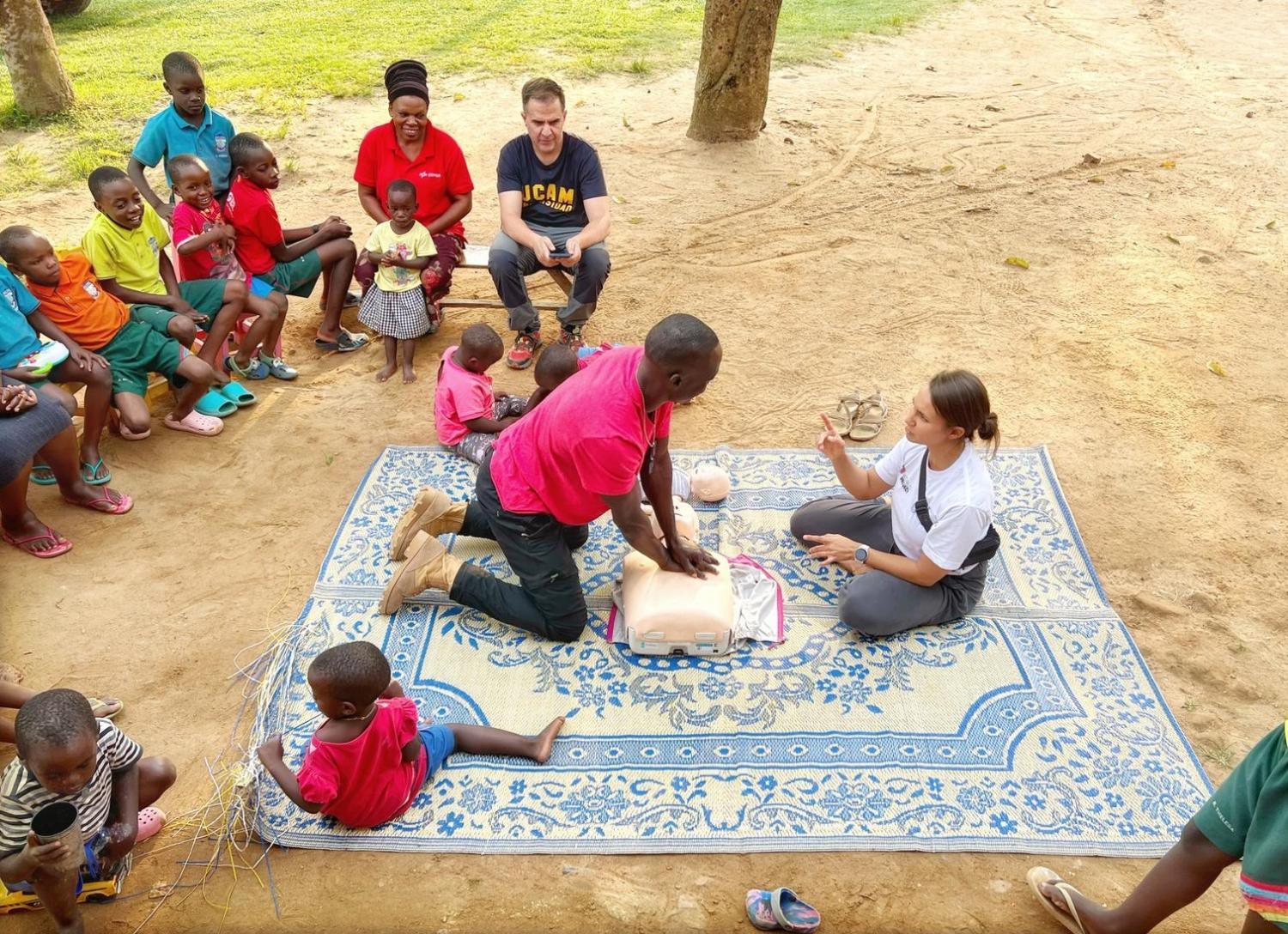 Los alumnos del colegio y el resto de vecinos de la zona han aprendido las técnicas de reanimación cardiopulmonar, así como los conceptos esenciales para la prevención de accidentes de tráfico, sobre todo de motocicleta, el principal medio de transporte allí, repartiendo además cascos entre la población.