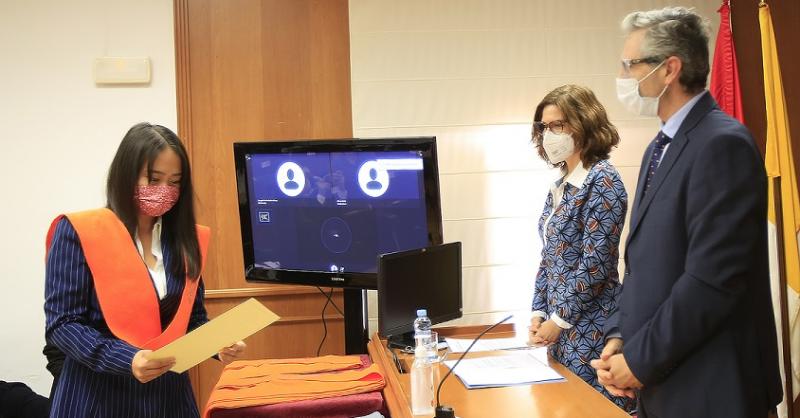 Blesa ha subrayado que “había un énfasis muy fuerte de los alumnos por graduarse y esta graduación es icónica, simbólica pero real, en dos realidades, virtual y presencial, en paralelo. Se congrega a una cantidad a de alumnos de diverso origen y diversa orientación, personas que llegaron a España hace poco más de un año en un contexto de globalización lanzada, donde cruzar fronteras, llegar a territorios y ausentarse era muy fácil y ahora se ha transmutado por completo el panorama, y nos encontramos a un grupo de valientes que están muy ilusionados, que han tenido una experiencia muy positiva en España y Murcia, como queda patente con este deseo de graduarse”.