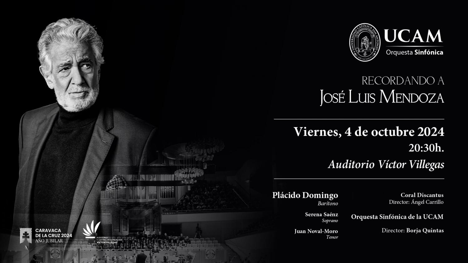 El día 4 de octubre en el Auditorio Víctor Villegas de Murcia tendrá lugar un gran concierto protagonizado por Plácido Domingo y organizado por la Orquesta Sinfónica de la Universidad Católica de Murcia, ‘Recordando a José Luis Mendoza’, fundador de la UCAM.