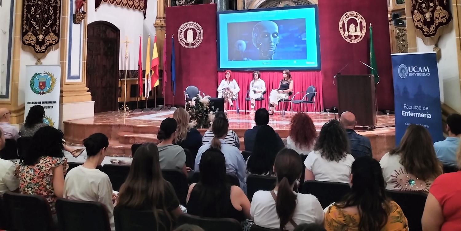 Que la inteligencia artificial ha venido para quedarse está más que demostrado, y en sectores como el de la enfermería son conscientes de ello. Ante esta realidad, la Universidad Católica de Murcia, junto al Colegio Oficial de Enfermería de la Región, celebra hoy en el Campus de Los Jerónimos la I Jornada ‘Enfermería y salud digital’, en la que se desarrollan tanto mesas redondas como talleres. Isabel Ayala, directora Gerente del Servicio Murciano de Salud ha inaugurado la jornada acompañada por María José López, vicedecana del Grado en Enfermería de la UCAM, y Amelia Corominas, presidenta del Colegio de Enfermería de la Región.